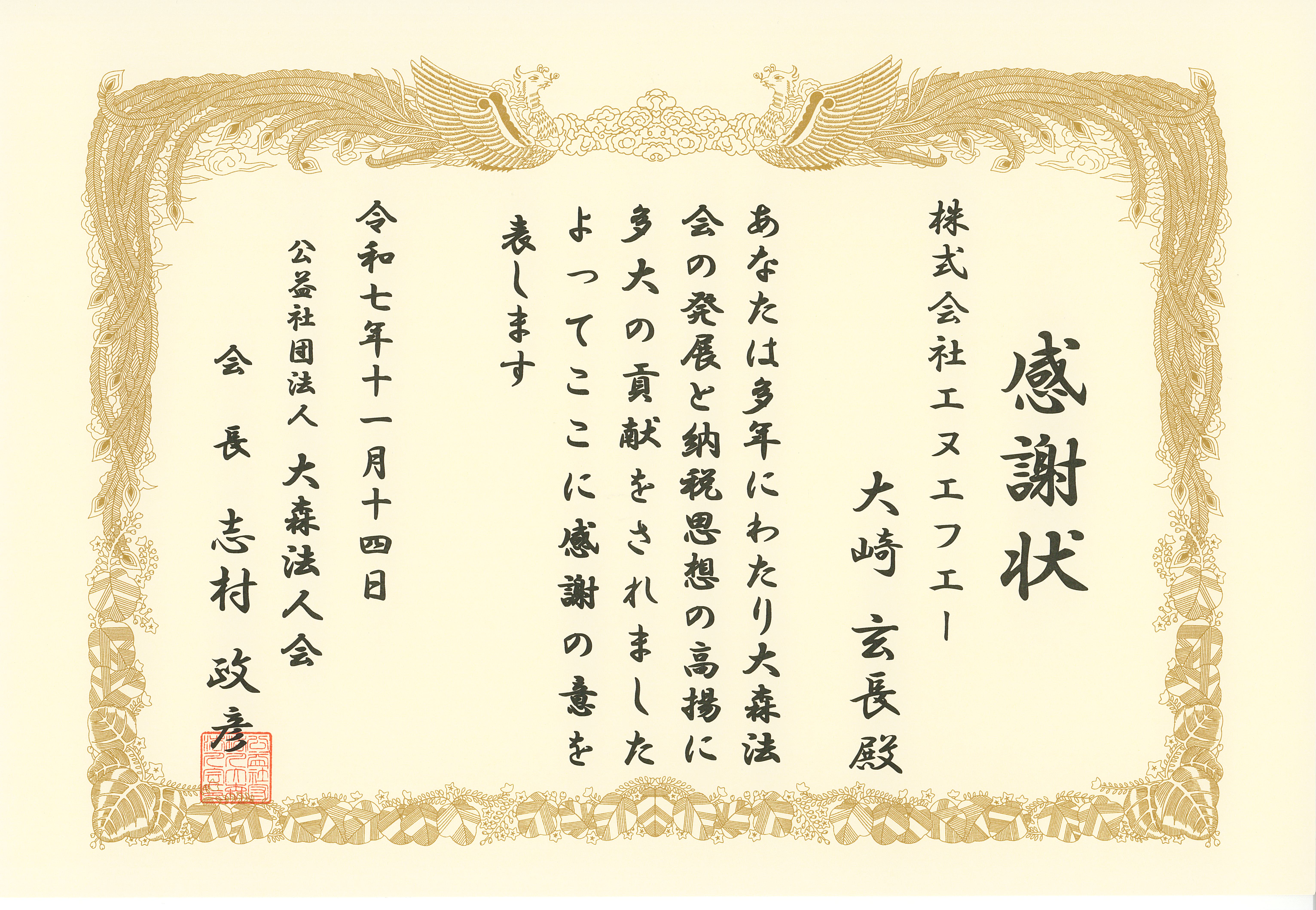 外務省国際協力局地球規模課題総括長より「SDGs推進私募債」による感謝状をいただきました。